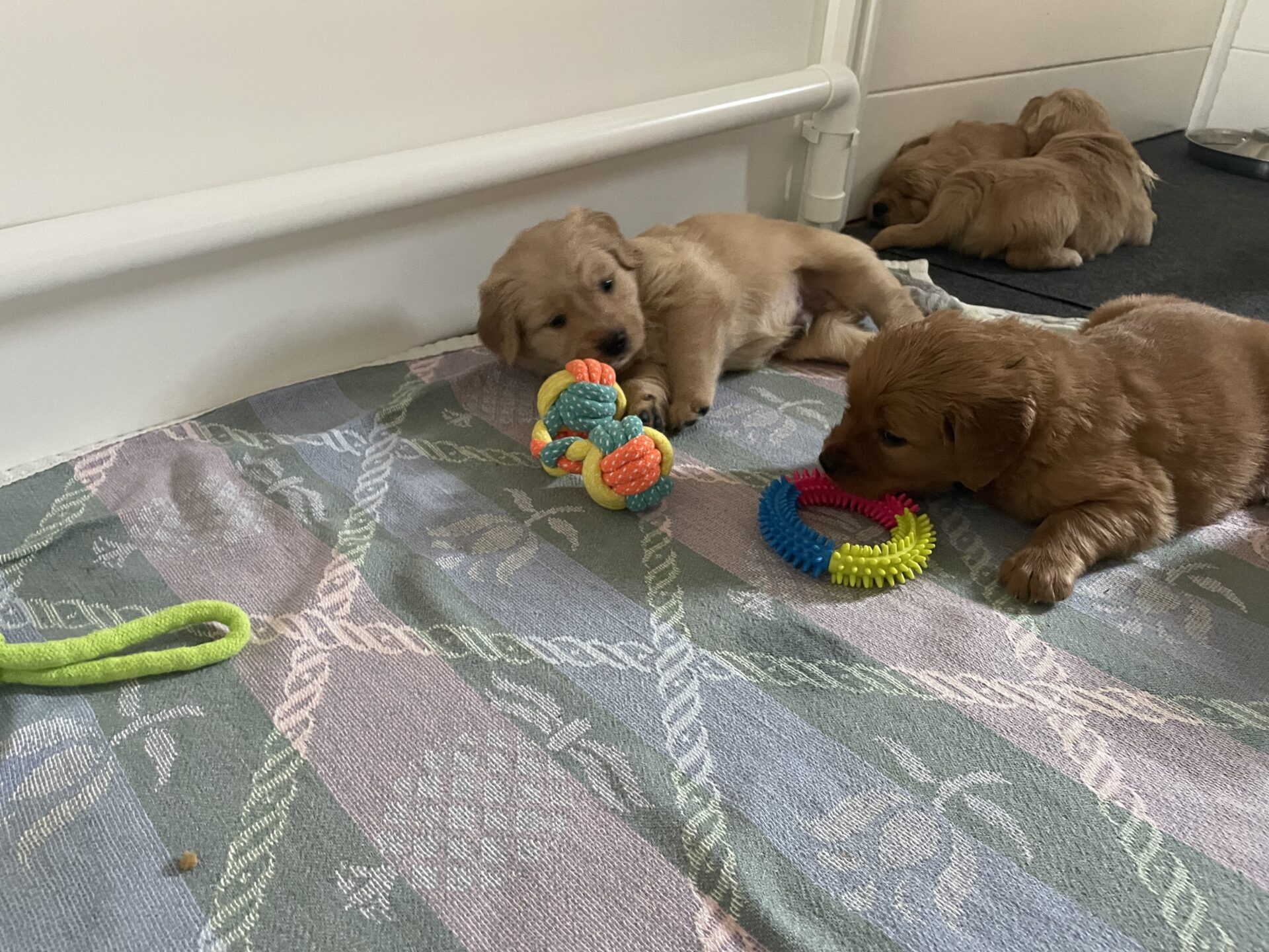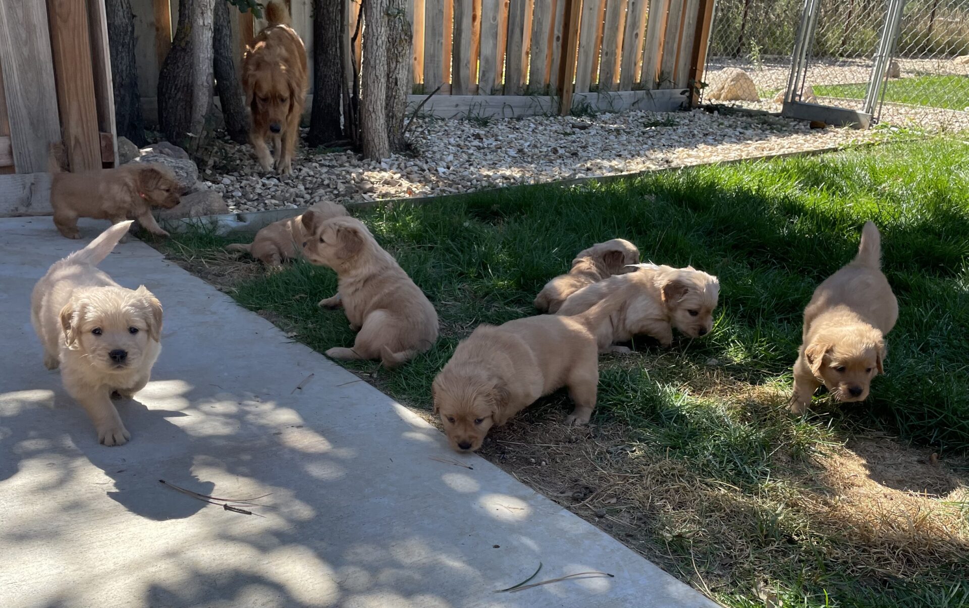 They were introduced to their new indoor/outdoor puppy area!!